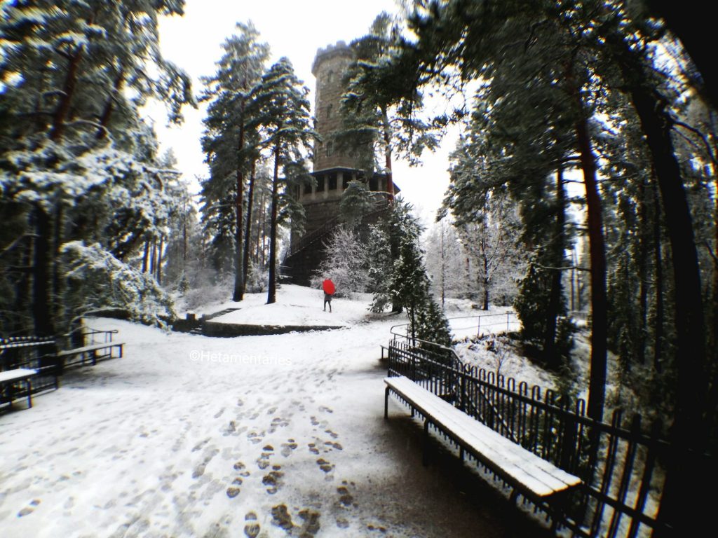 Unfortunately Finland and November meant that it was snowing, or in our case it was sleeting. We were not made from sugar so we took umbrellas and headed to Aulanko. After travelling through the sleet we grabbed the umbrellas and headed towards the viewtower. I was luckily travelling with locals who could tell me about the history of the area. About how it used to be owned by a colonel who created the area into its current glory for a woman he was in love with. In the end the woman did not come to live in Finland, in Hämeenlinna, in Aulanko, but in the end we all get to now enjoy the fact, that men can go to extreme lengths for love.